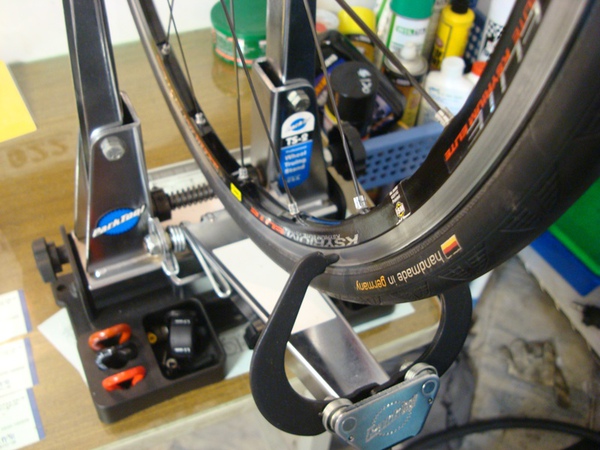 再來檢示輪組有無偏擺~ 幅度控制在40條左右~