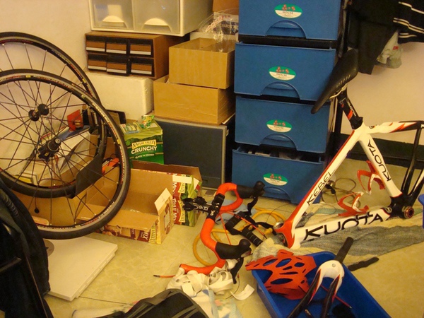 再來把車架、輪組等營件洗好,用空壓機吹乾後,再放到房間跟我一起吹冷氣