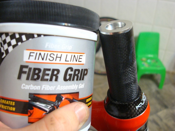 要上墊圈和龍頭前,先塗一些碳纖止滑劑,增加磨擦力