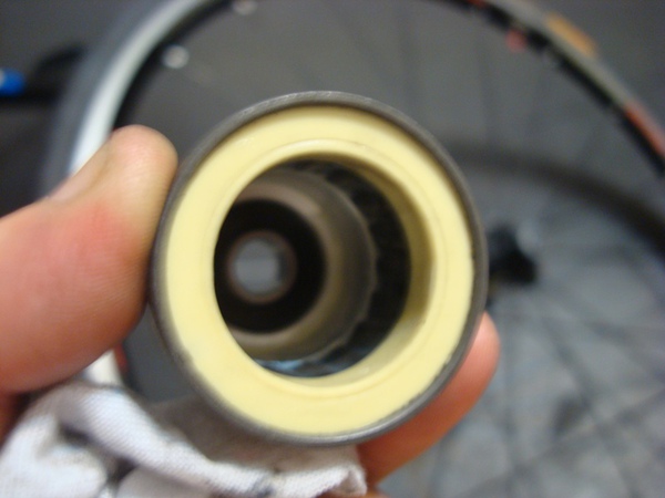 輪組的棘輪座拆下後擦拭乾淨,花鼓內的培林也是哦!! 裝回前我用終點線的陶瓷潤滑油重新上一次!