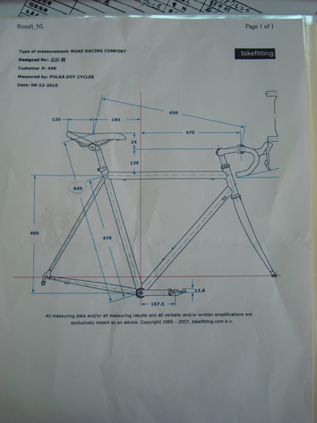 最後還有一張最重要的數據,實際調整後,坐墊高度梢高,坐墊較偏前,卡踏位置也做微調